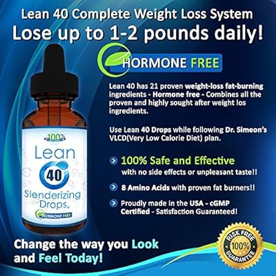 • Lean 40 HCG Slenderizing Drops Hormone-Free 2 oz Bottle with Diet Plan