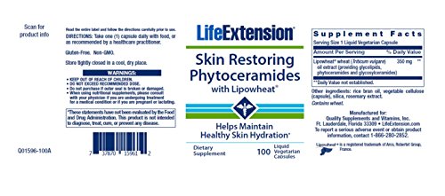 Life Extension Skin Restoring Phytoceramides with Lipowheat Liquid Capsules, 100 Count