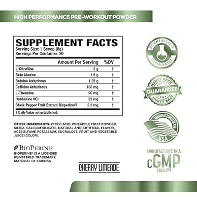 NITROSURGE Pre Workout Supplement - Endless Energy, More Strength, Sharp Focus, & Intense Pumps - Nitric Oxide Booster & Preworkout Energy Powder - 30 Serving, Cherry Limeaide ( 8.5 oz)