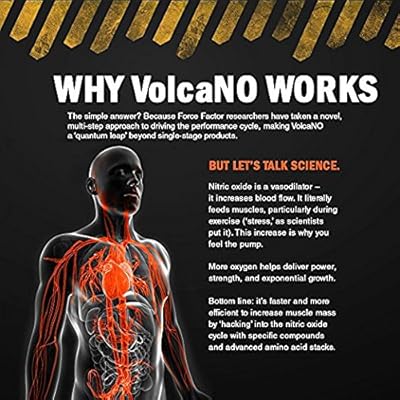 VolcaNO Pre-Workout Nitric Oxide Booster with Creatine, Boost Nitric Oxide, Energy, and Strength, Build Muscle, Better Pump, Force Factor, 120 Count
